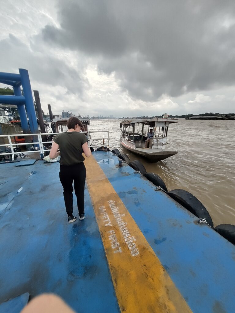 P’tite banane, un Grab (Uber local) et départ pour la sortie du jour, l’île de Bang Krachao, surnommée le poumon vert de Bangkok. On se retrouve à l’embarcadère de Wat Khlong Toei, enfin derrière côté ville, et franchement ça saute pas aux yeux que c’est par là qu’il faut passer 😂.