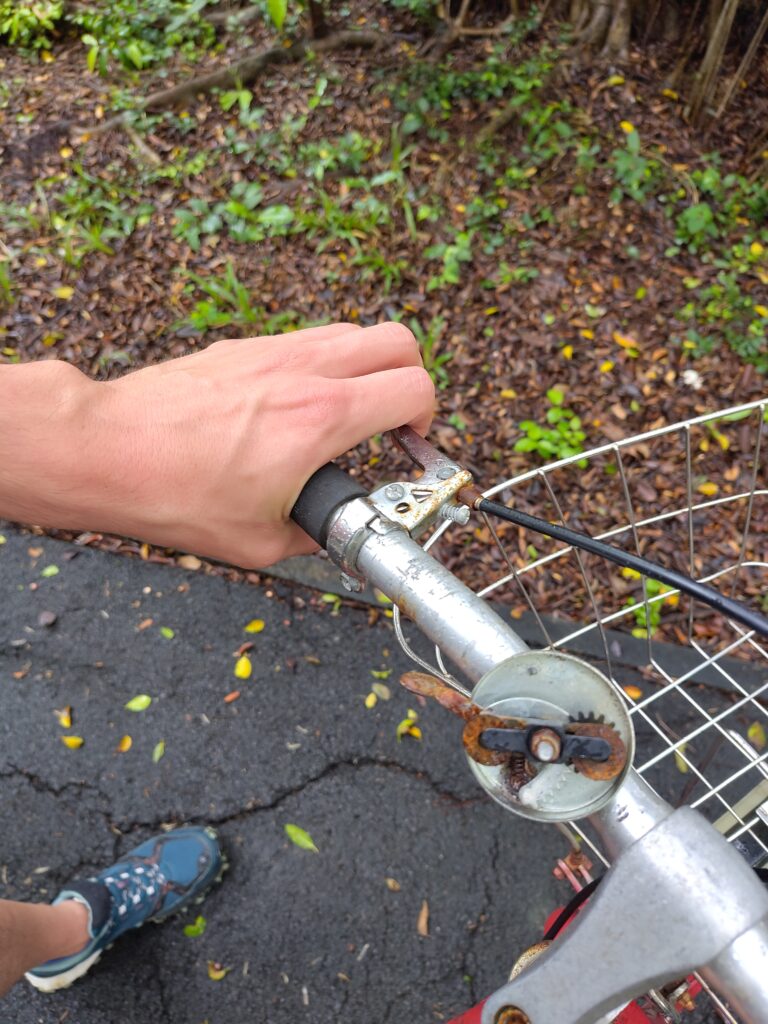 Ensuite départ vers le petit choc de vélo qui était réputé moins cher et effectivement on a compris pourquoi… 2 vélos qui tombent en ruine ça vaut en effet pas bien plus que les 40bht pour la journée qui nous sont demandés. On monte dessus avec monstre plaisir en rigolant et on attaque le parc (qui sera désigné plus tard comme la « pseudo-jungle »).