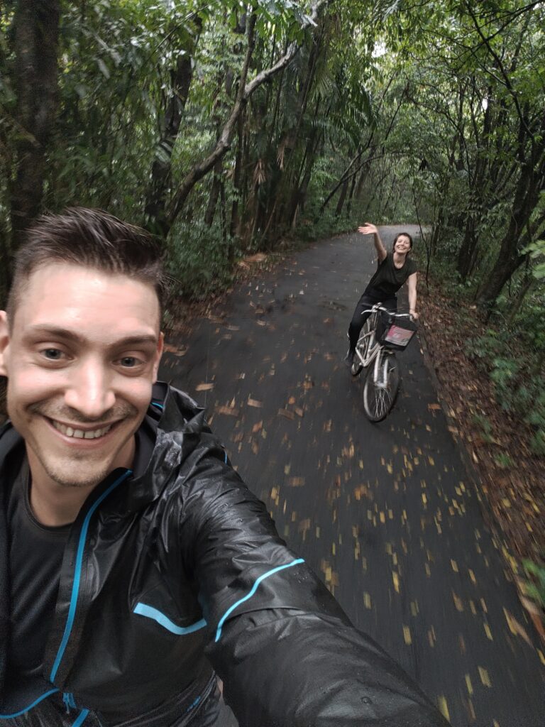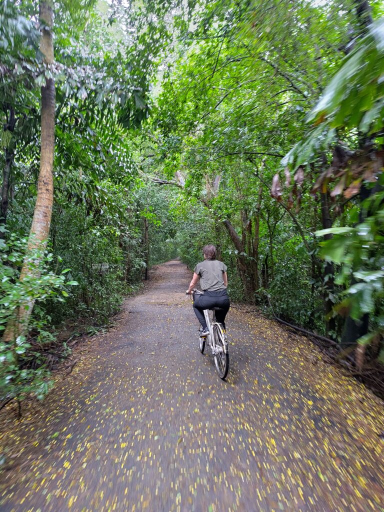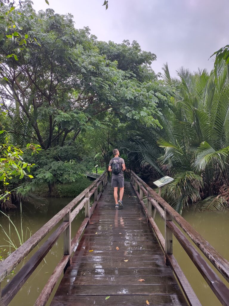 Là on s’aventure dans le parc pendant 1h de tour à vélo sur des petits chemins aménagés trop chou avec des ponts et des points de vue sur les écosystèmes. Ça pleut un peu mais pas trop.