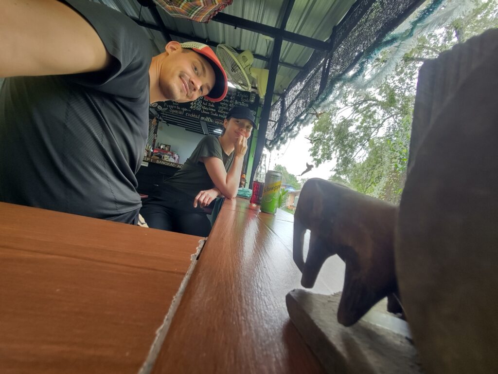 On attend une accalmie qui n’arrivera jamais et on se motive pour braver la pluie jusqu’à un petit bar où on arrive trempe 😜.