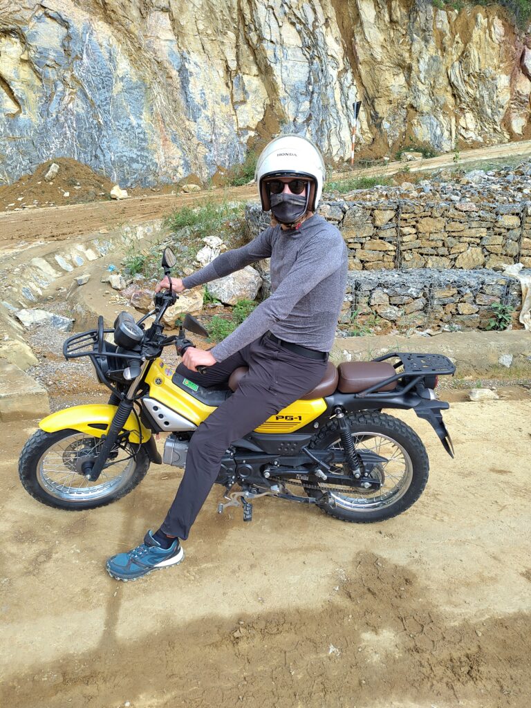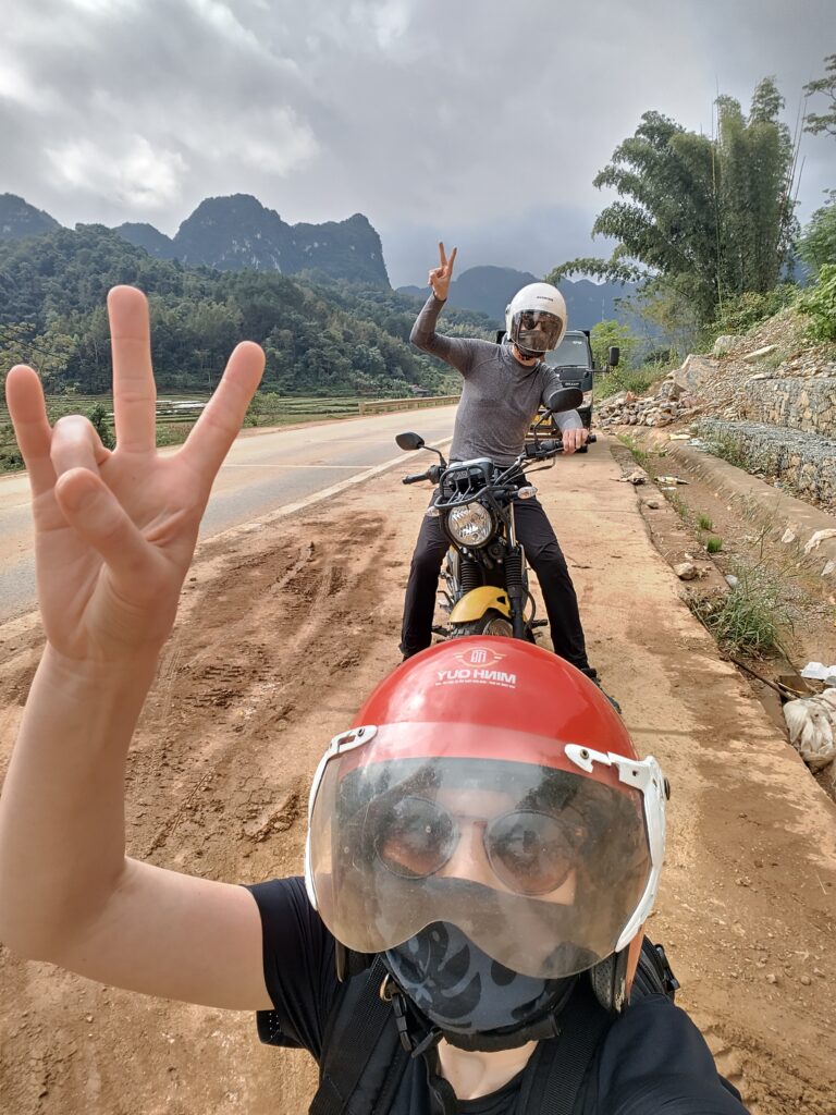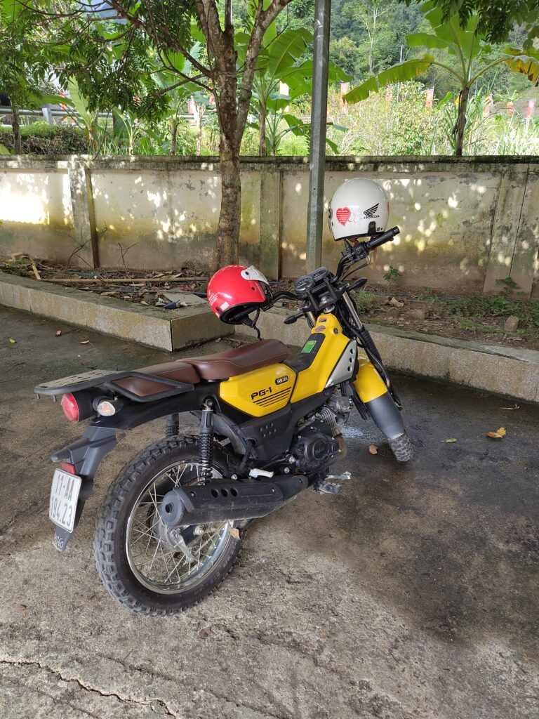 De retour du café, on se motive un peu ! Nous décidons de louer une moto pour une virée l’après-midi. On se retrouve à choisir la plus grosse moto de terrain disponible : une toute petite moto de 110cc (c’est déjà pas grand pour des vietnamiens… Imaginez Loïc dessus et Laura derrière). Mais elle a de la gueule ! Ici on ne trouve pas de motos comme chez nous, 90% de scooters (parfois un peu sport) et 10% de motos. D’ailleurs la nôtre on sait pas trop où la situer 🤣