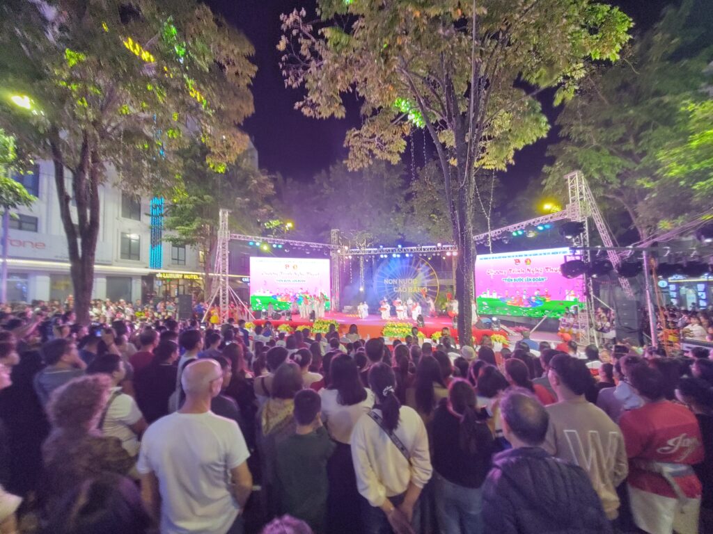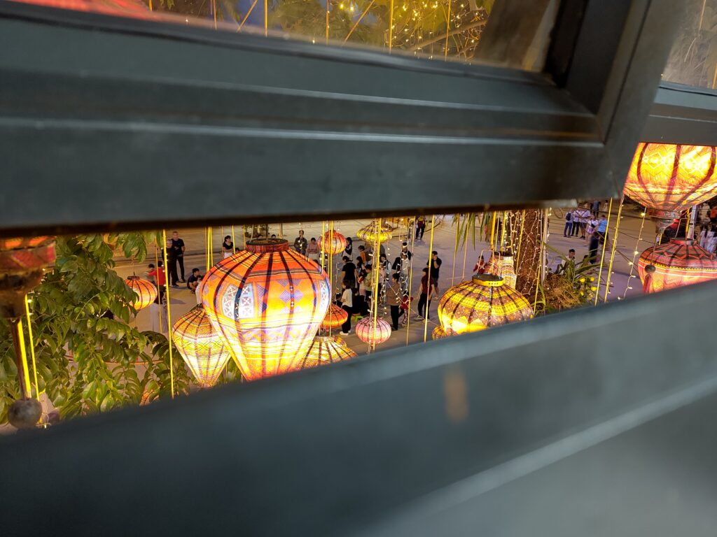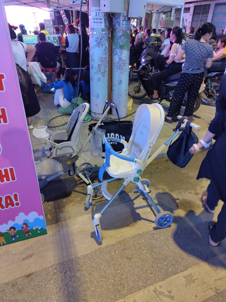 Le soir nous sortons pour aller voir le marché hebdomadaire, et c’est comme la fête du village, toutes les familles sont là, les écoliers font des spectacles sur scène avec de la danse. On s’arrête pour manger un Banh Mi au boeuf, avec la vue sur un jeu local genre Marelle.