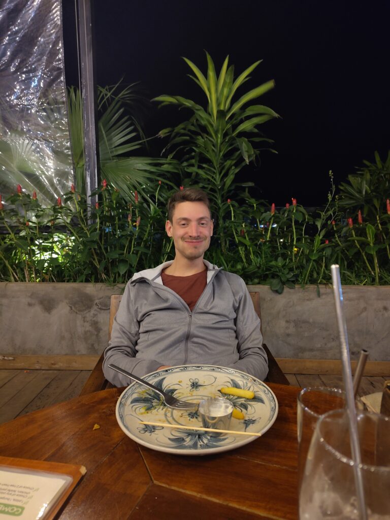 Un peu honteux, nous allons manger dans un attrape-allemands, mais ça fait du bien de manger autre chose que du bouillon et du riz 😅.