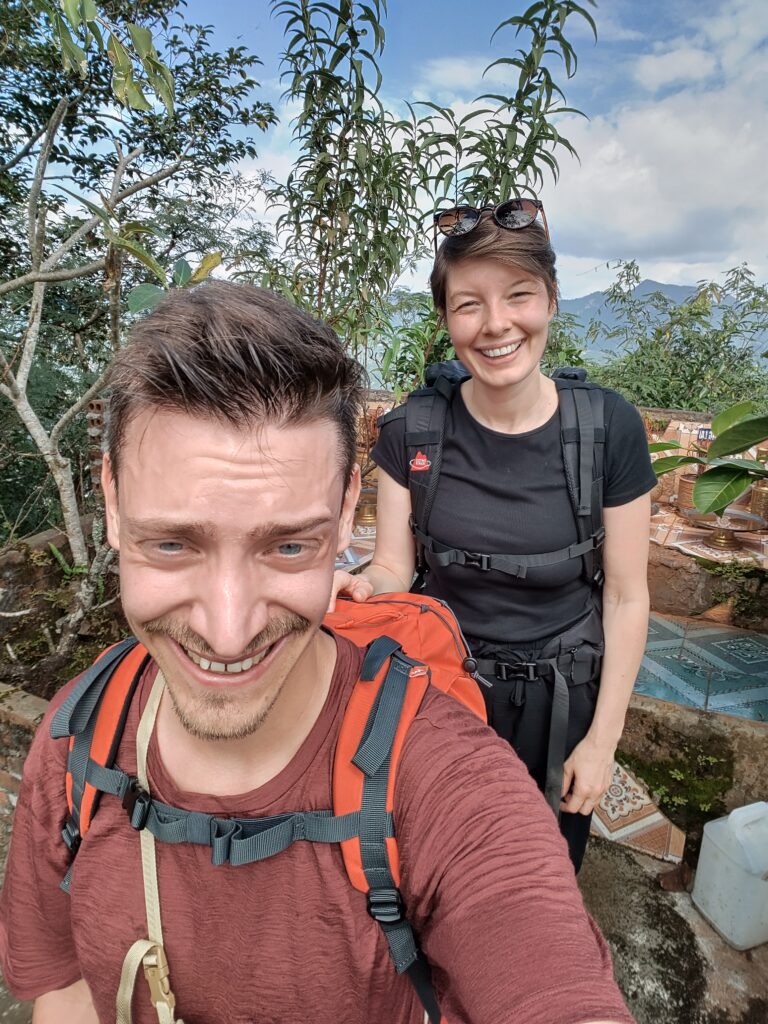 Ensuite, avec nos gros sac à dos (on a fait le check out de l’hôtel déjà), nous nous mettons en route pour un mont au milieu de la ville, avec la promesse d’un joli café, et d’un point de vue sur la région tout au sommet. Vu le paquetage, la chaleur, la pente, l’humidité et le reste de fièvre, autant dire que je n’ai jamais autant transpiré de ma vie 😅. Mais l’effort en vaut la peine.