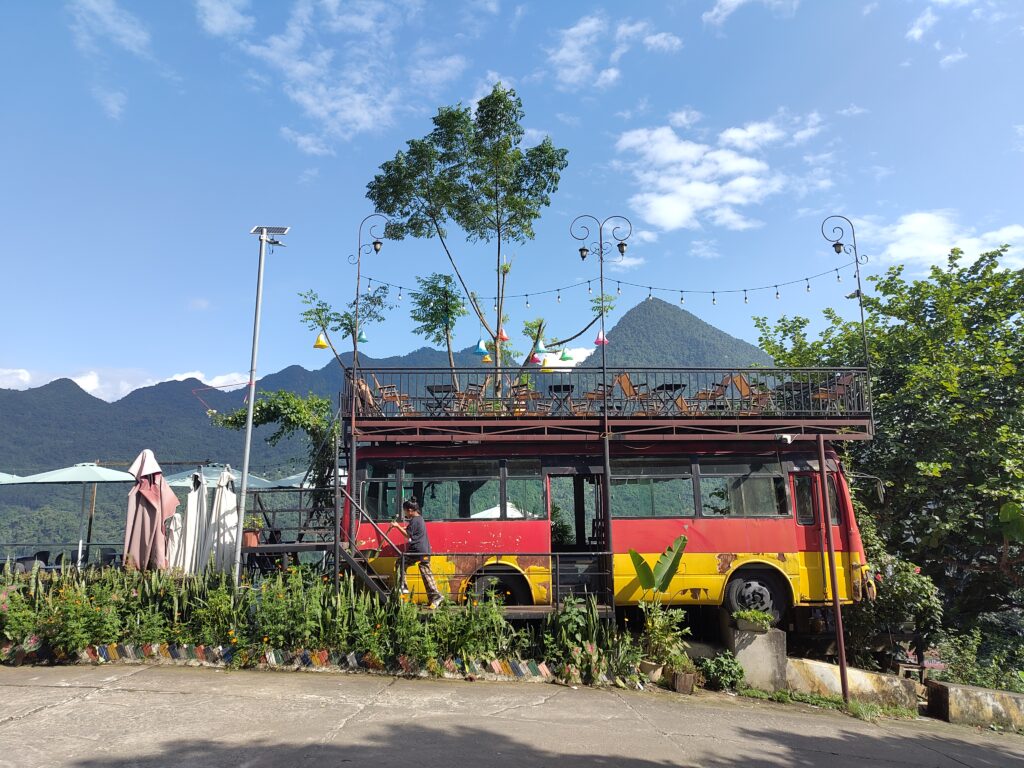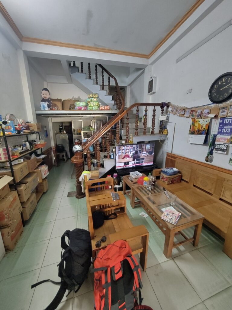 Un petit vol de drone depuis le sommet pour montrer à quel point ces vertigineux. Puis c’est déjà le moment de redescendre et de rejoindre le point de RDV pour notre transfert vers Sapa. On s’y rend en avance comme d’hab, mais c’est en dehors du centre, bizarre. On commence à avoir faim mais rien d’ouvert pour manger dans cette rue et les trucs ouverts sont assez loins pour que l’on ne soit pas surs d’être à l’heure pour le bus. On trouve un supermarché avec des biscuits pour nous sauver, et on demande des toilettes. Le tenant nous propose les siennes (les locaux habitent souvent à côté ou dessus leur magasin). Je n’ai pas pris de photos mais on est à la limite du salubre 😅. Mais ça dépanne ☺️! Punaise la différence avec chez nous…