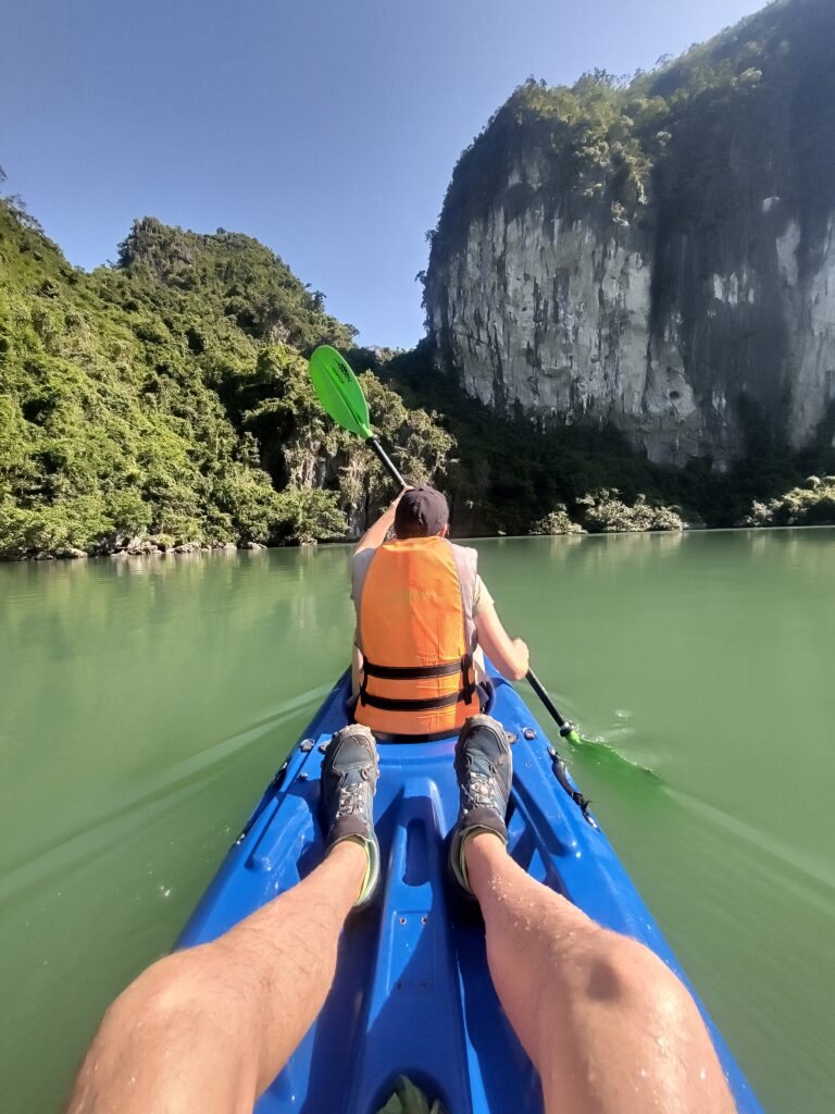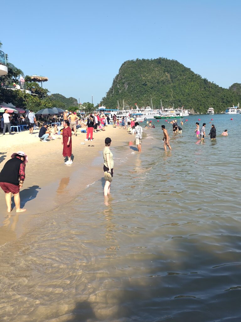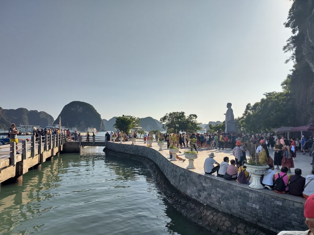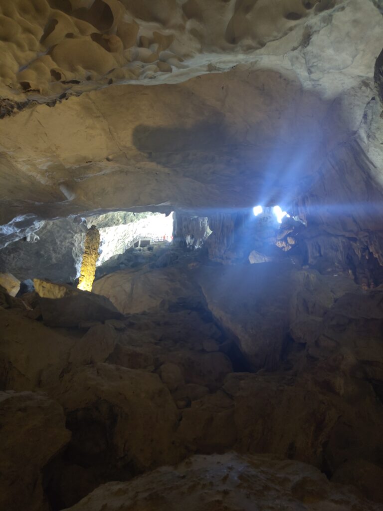 La croisière du jour nous emmène sur la baie d’Halong, et on fait des arrêts touristiques assez fréquentés, c’est un peu l’industrie avec tous les bateaux de croisière. Forcément, comme il n’y a que ça, tout le monde fait pareil.