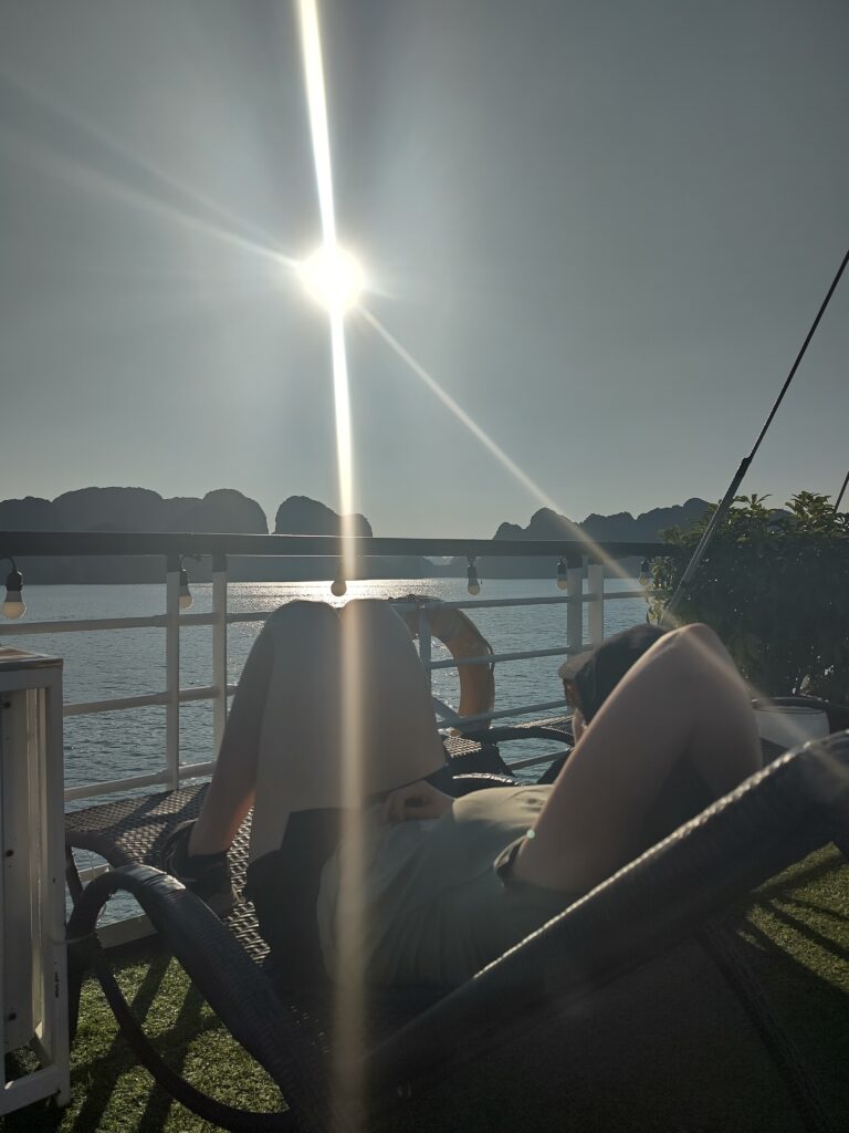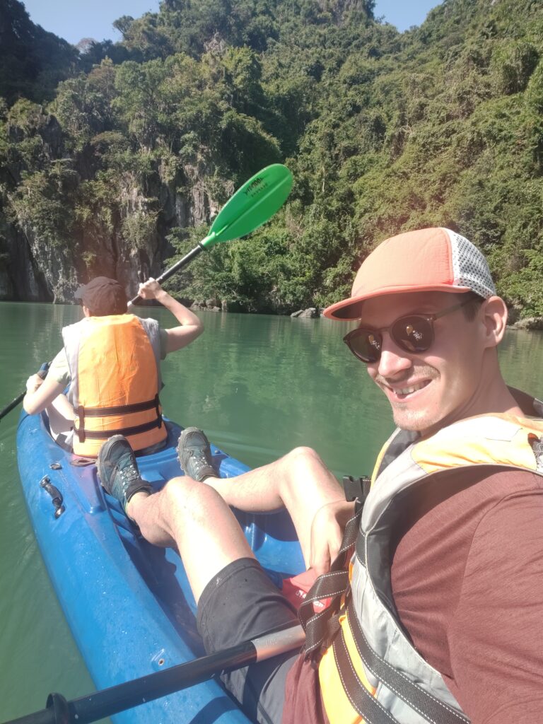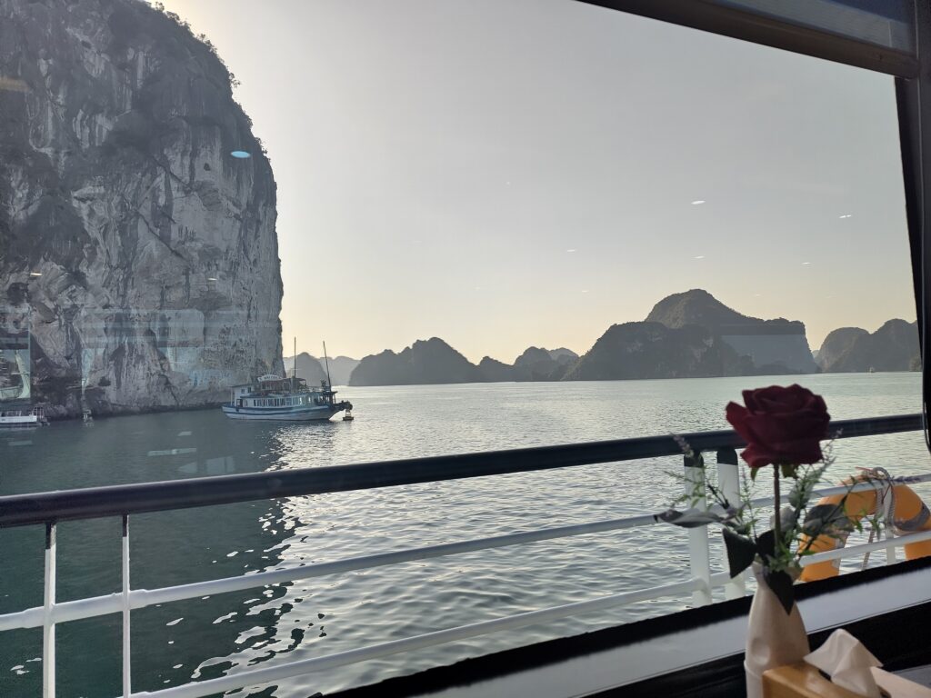 On cherche quoi faire. Le constat que l’on ne s’attendait pas à faire, c’est qu’il ne se passe vraiment rien sauf des tours en bateau dans la baie d’Halong. Il n’y a aucune autre activité. Hier, on avait pas réservé de sortie pour aujourd’hui en se disant qu’on allait trouver un truc sur le quai du port au pire.