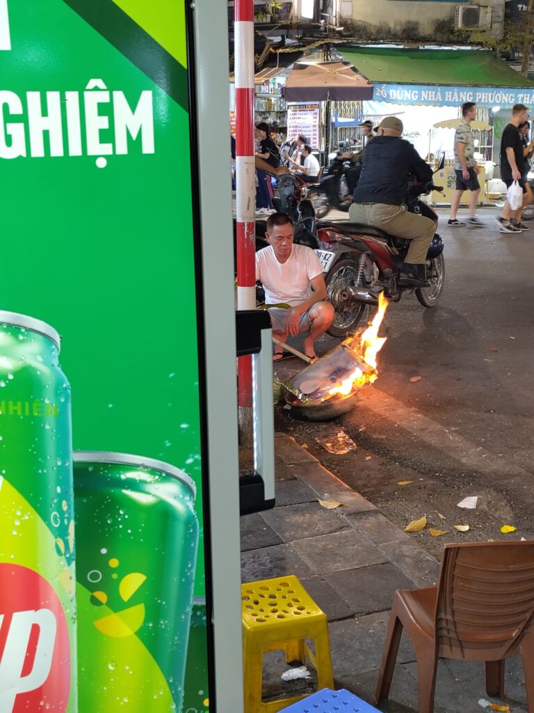 On n’a pas très faim alors ce sera re-Banh Mi ce soir. Pendant qu’on attend notre repas au comptoir, à côté ça sent le cramé ?