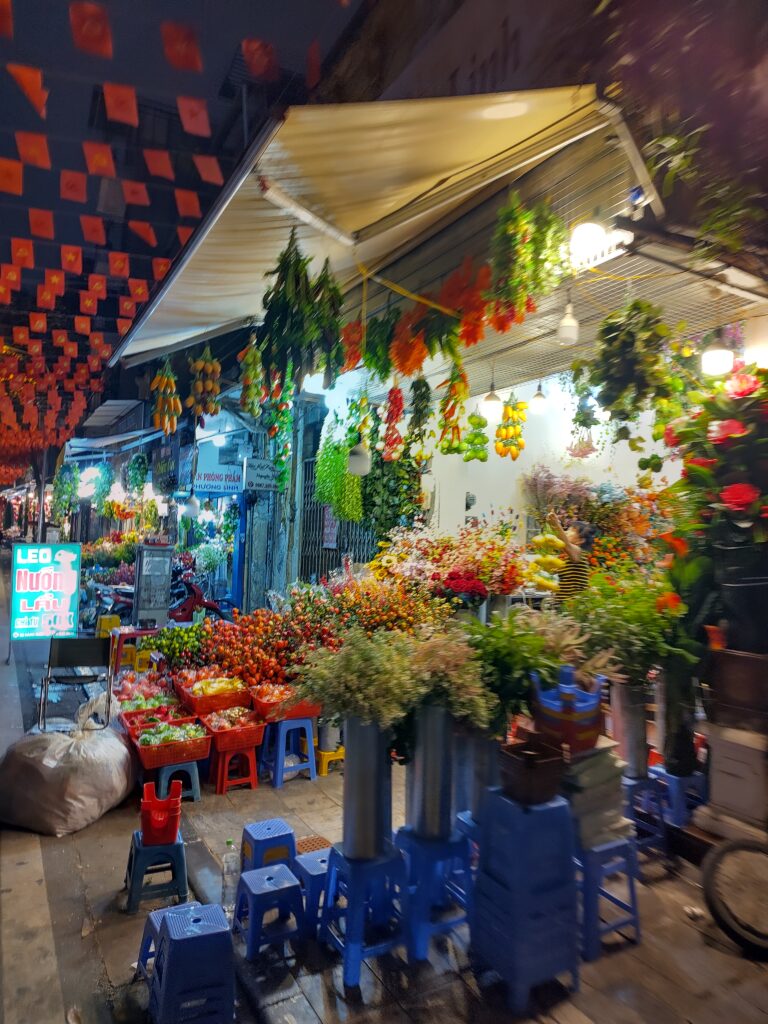 Mais la seule boutique qui en vend n’est vraiment pas motivée à vendre quoi que ce soit, alors on continue et on tombe sur un marché « pédestre » dans Hanoï.