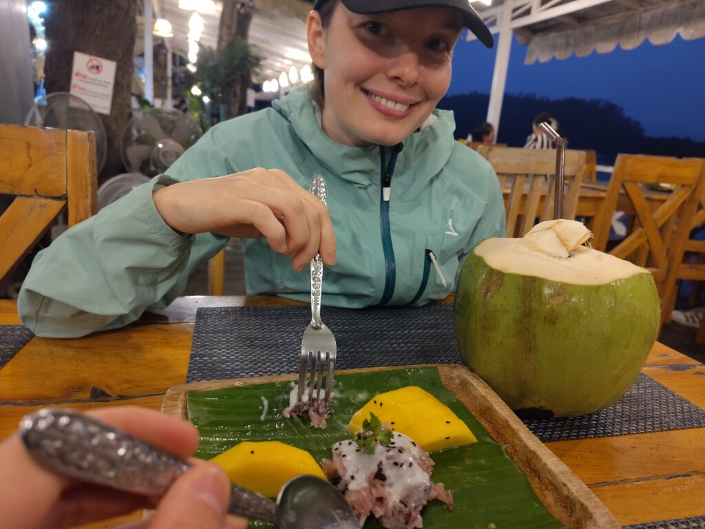 Mais surtout, surtout, surtout (!) nous dégustons enfin un riz gluant avec de la mangue, quel délice 😊