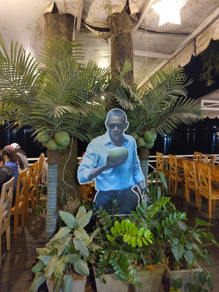 Nous nous arrêtons chez Obama Coconut 🥥 😂 (Le président était passé par ce bar pour boire un jus de coco) sans faire exprès car on rentre par l’autre côté. Bien sûr Laura a des goûts présidentiels et elle choisi le fameux jus de coco.
