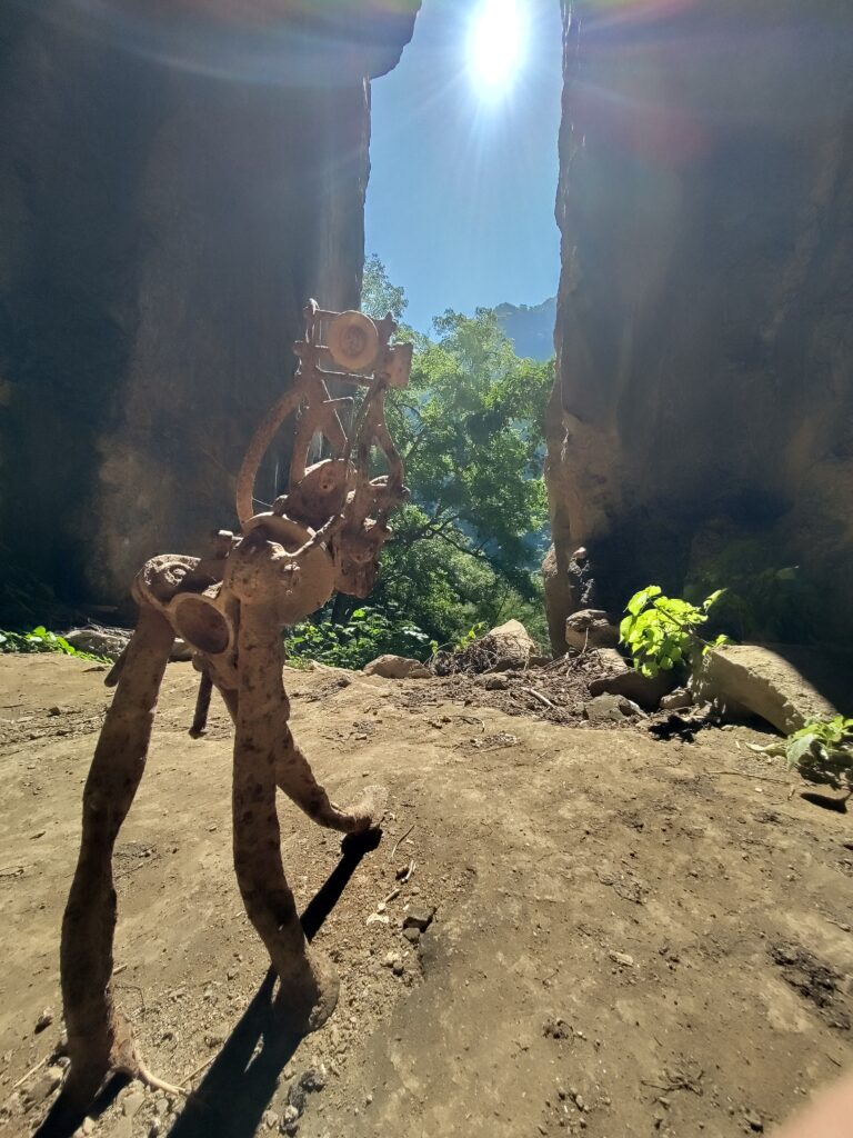 Il y a un fil électrique qui longe le chemin, sûrement pour éclairer la grotte. Je repense au travail quand je vois des câbles électriques tirés dans la forêt 🤣. Par contre ici c’est pas les mêmes moyens 😄