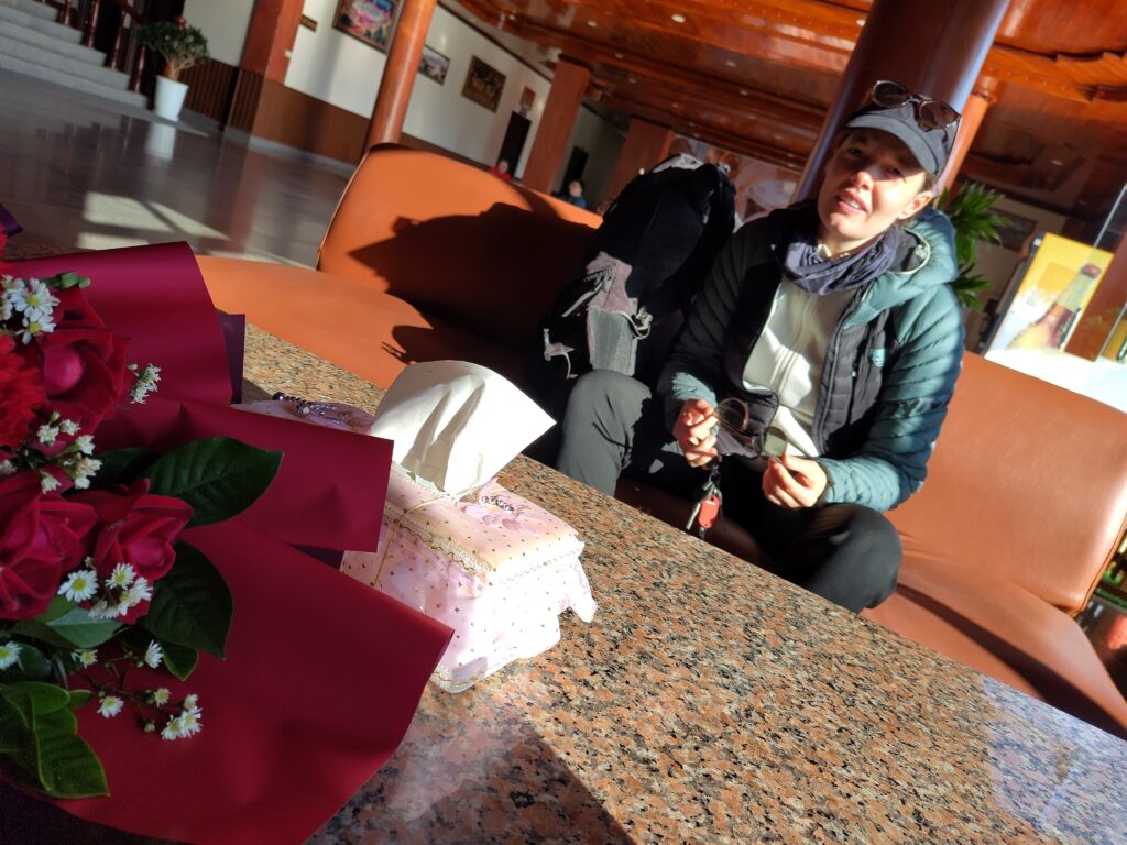 A midi nous trouvons un restaurant sur la route au sommet d’un col. Il n’y a personne, on demande à un jeune qui passe par là si on peut manger… Il travaille là 🤣 et nous amène un menu. Quand je vous dit qu’il faut creuser… Ça ressemble à rien, pas un rat, mais c’est délicieux 🤩