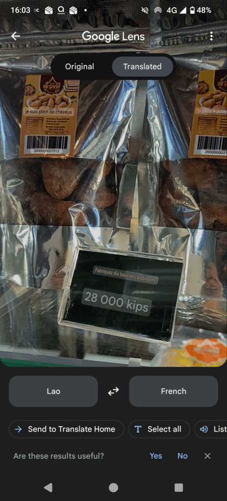 Tout est en Lao, et autant dire qu’on ne parle pas ça couramment, donc on essaie avec Google Traduction mais c’est un peu compliqué…