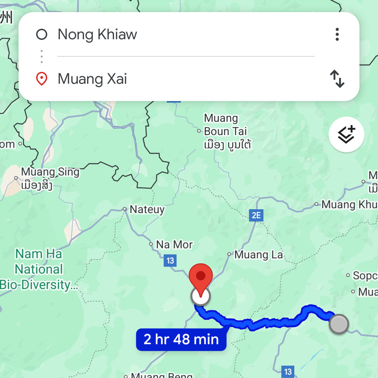 Ensuite, nous quittons Nong Khiaw pour prendre la route direction Muang Xai, notre prochaine étape. Ça devrait être l’étape la plus courte de notre boucle alors on peut prendre le temps de faire quelques haltes.