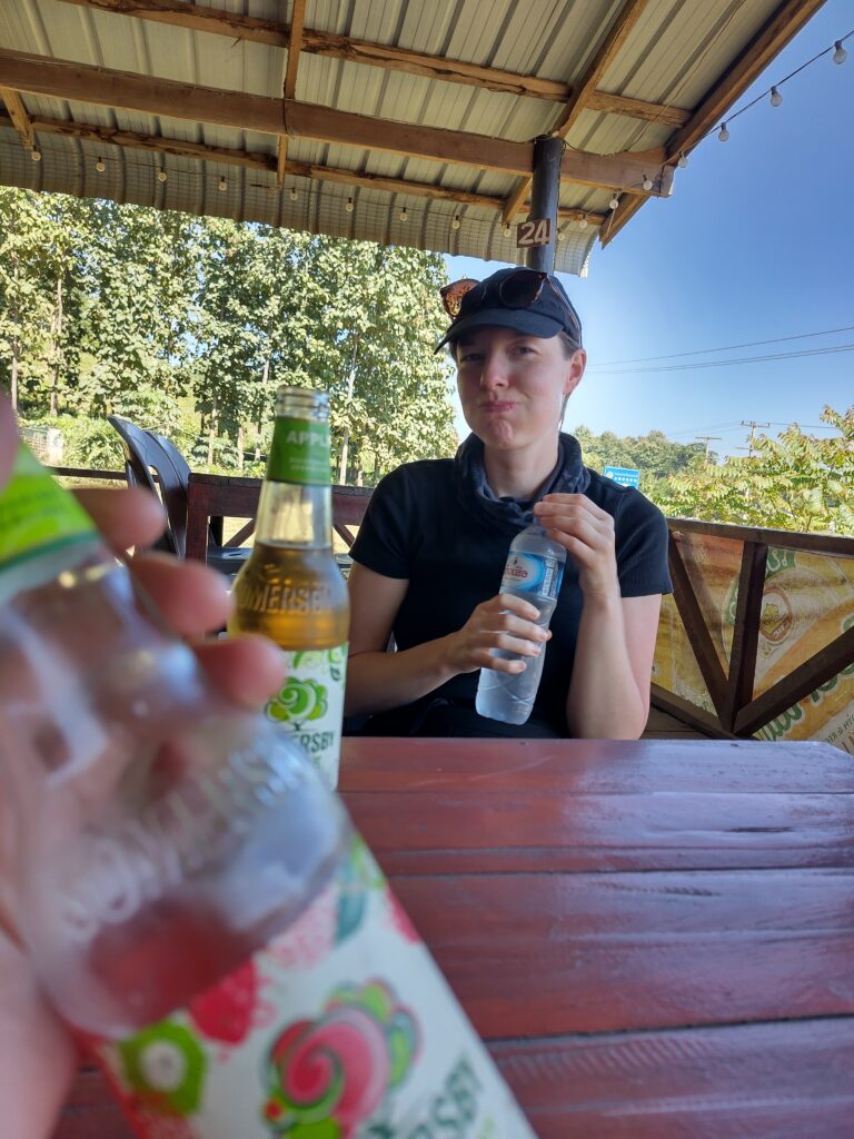 Je mentionne cela car en fait, toute la route est en travaux, il y a donc beaucoup de tronçons avec des stops, où on attend souvent 15min. Ça + les routes en mauvais état = beaucoup de temps pour faire le trajet.