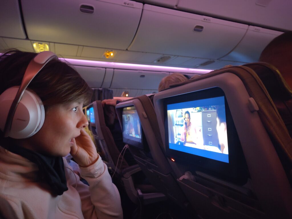 Franchement les avions c’est plus ce que c’était, on y mange super bien, y’a des coussins et couvertures, les écrans avec les films, tout le tsoin-tsoin. Pas si pire comme voyage 👍
