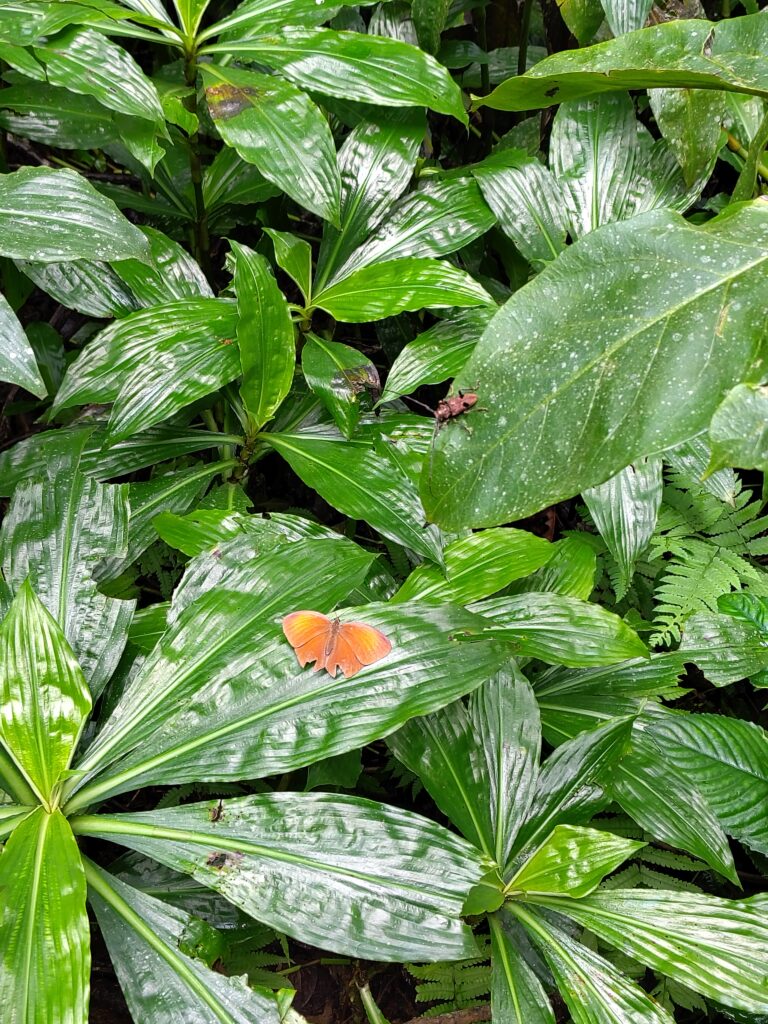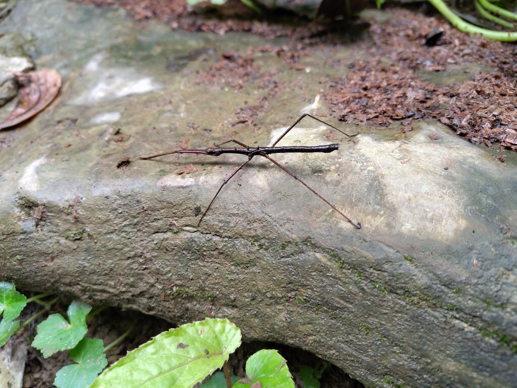 On croise des papillons, phasmes (les insectes qui ont la tronche d’un bout de bois), oiseaux. Pas de serpents pour cette fois, en théorie ils dorment dans les arbres (mais c’est tellement dense que c’est comme jouer à où est Charlie).