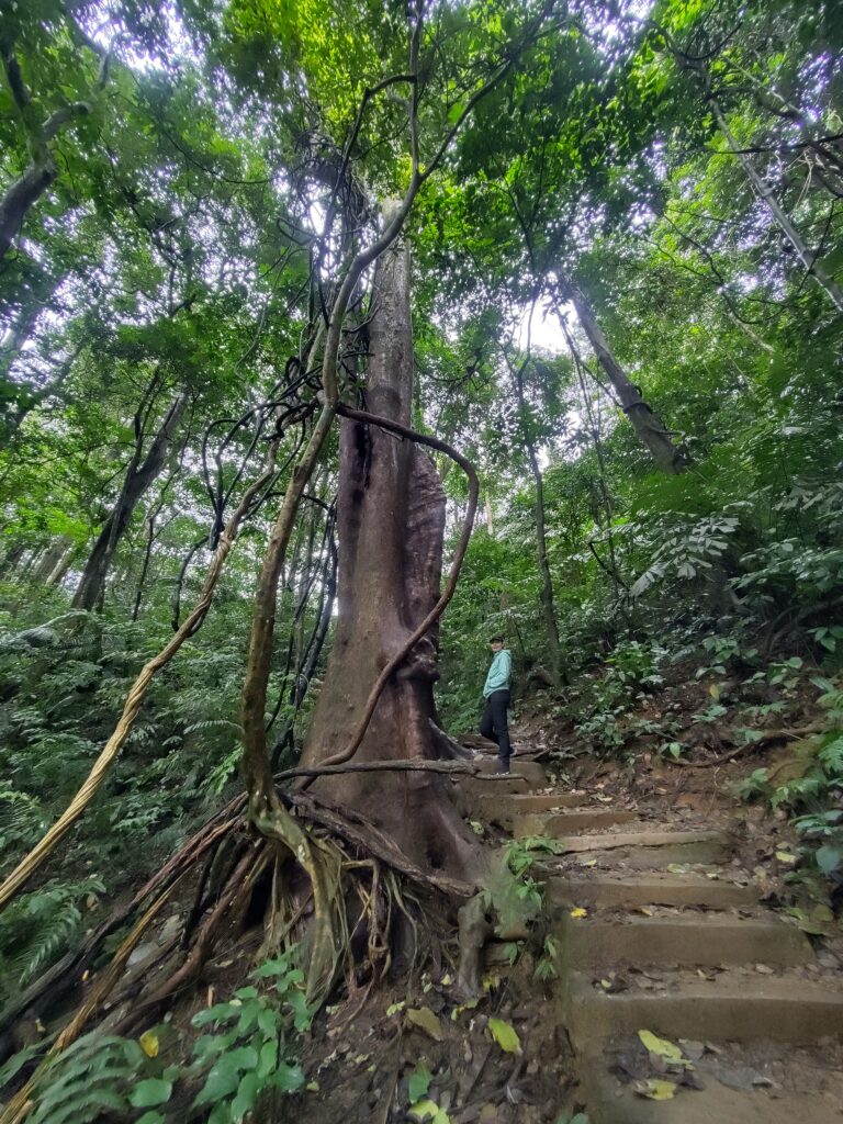 Il a tellement plu ces dernières semaines que tout est boueux, et à peine on s’écarte du chemin qu’on se retrouve un embourbés. L’effort en vaut la peine car nous arrivons devant des arbres géants impressionnants. Une partie de la zone était sous 1m d’eau pendant le dernier typhon.